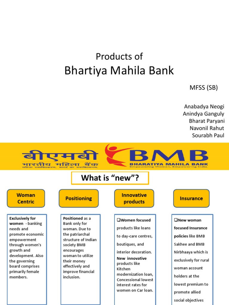 In order to get enrolled in bharatiya mahila bank drive, fresherslive will help you with its resources like placement papers, aptitude skill test, interview questions and answers, current affairs, etc. Directors of bharatiya mahila bank limited are sannovanda swathi machaiah, manish kumar lal, srinivasa rao nagarjuna,. Prior to joining bhartiya mahila bank, ananthasubramanian worked at punjab national bank and was recognised in the following roles: Chidambaram has identified that usha ananthasubramanian to be the ceo (chief executive officer) for bhartiya mahila bank, the first women's bank of india. Bharatiya mahila bank is focused on encourage women entrepreneurs through financial support.